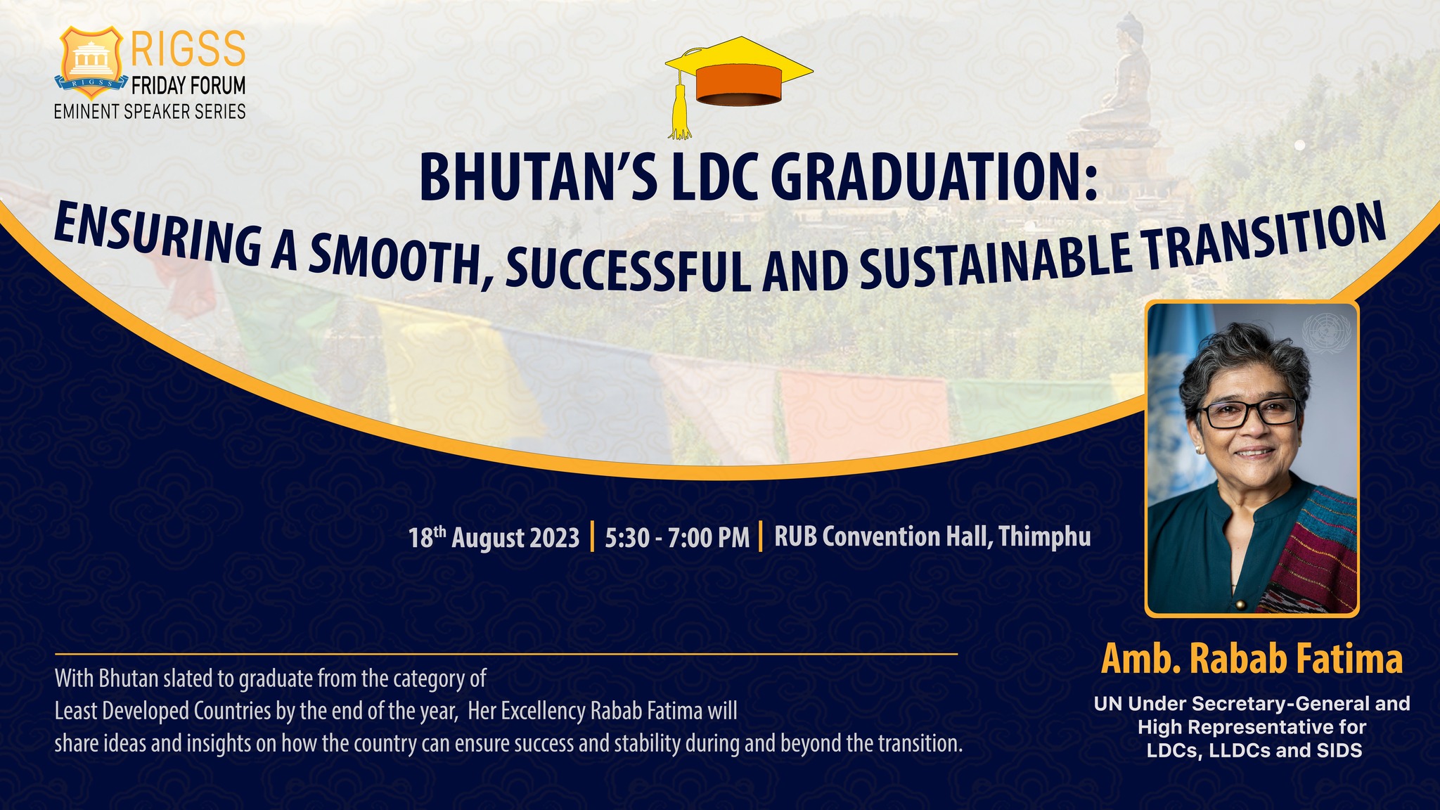 RIGSS Friday Forum Eminent Speakers Series Ambassador Rabab Fatima will be speaking on “Bhutan’s LDC